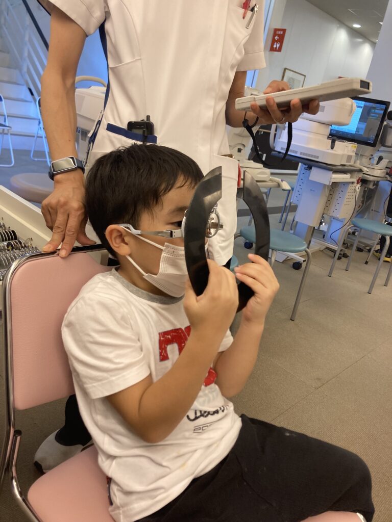 さて、子どもの視力検査は事前準備が必要だ。子どもの眼の調節能力は高く、調節機能を意図的に麻痺させなければ正確な検査ができない。視力検査を受ける5日前から1日に2回も散瞳薬を点眼しなければいけない。点眼を嫌がる息子に「正確な視力を測るために必要だよ」と辛抱強く説明して、母子共に頑張った。