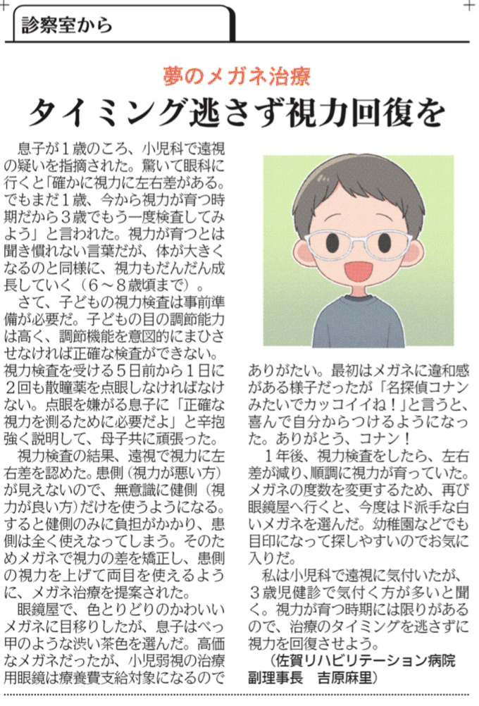 今回の「診察室から」は私の息子が取り組んでいるメガネ治療について取り上げました。