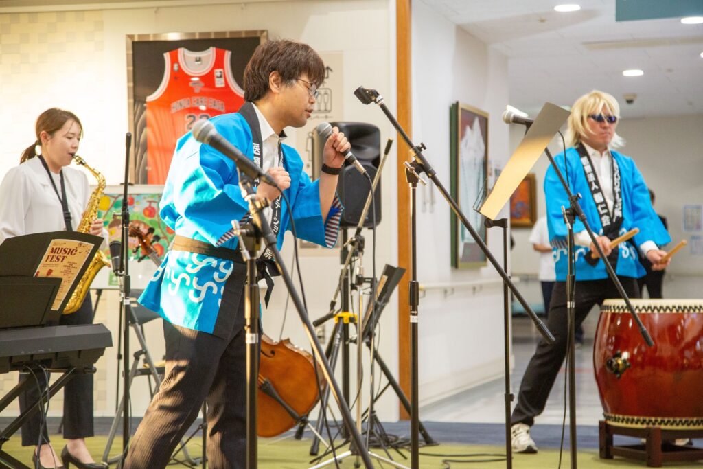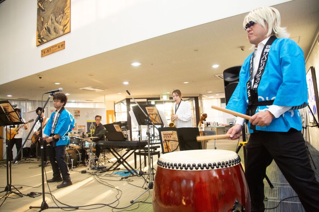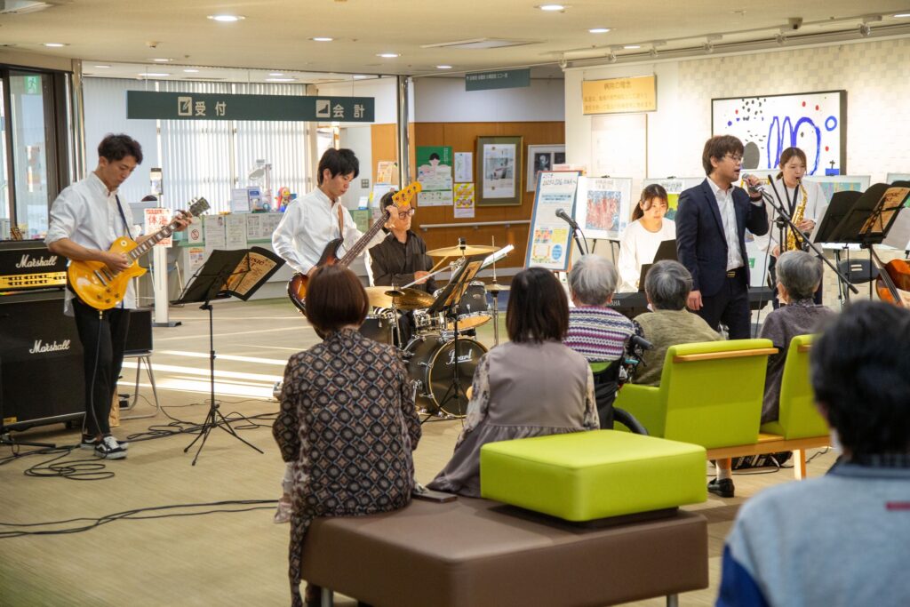 ロビーコンサートは久々の佐賀リハバンド♪前回は南里悠介先生の強い希望でB’zのウルトラソウルを演奏、ファンに怒られるかと思いきや、意外にも「またやって欲しい!」というリクエストをいただきました。