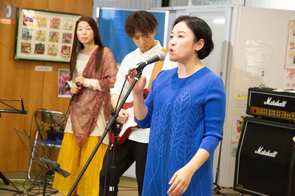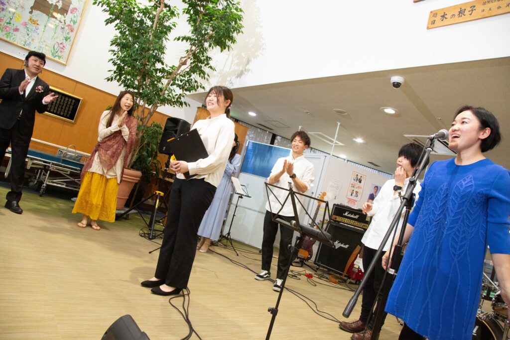 患者さんから「夏祭り良かったよ。次はDIAMONDS歌ってよ!」とリクエストいただきました。聴いたことはあるけど歌うのは初めて。ライラックでミセスが裏声を使うのとは違ってけっこう地声に近い感じでパワフルに歌い上げる曲で、練習するときも座っていたら声が出ないなどの問題が…。でも一生懸命歌って、本番では岩永智代先生がハモってくれて気持ちよかった!リクエストしてくれた患者さんも「また何か考えておくね」と言ってくれたので、次は何を歌おうか、今から楽しみです♪